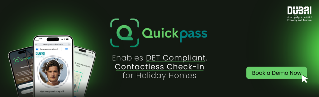 QuickPass is mr.alfred’s automated guest check-in solution that verifies guest identity digitally and submits required guest data directly to the Department of Economy and Tourism (DET). It removes manual uploads, reduces compliance risk, and enables contactless check-in for holiday homes in Dubai.